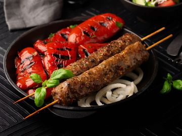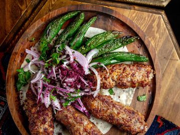 Ingredients: 2 Pieces Of Beef Kofta, Salad, Tahini, and Pickles.