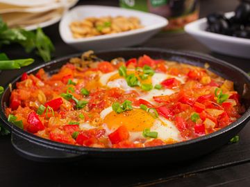 3 Eggs, Tomatoes, Pepper, Onion, Garlic, Tomato Sauce, Bread.